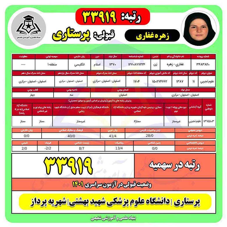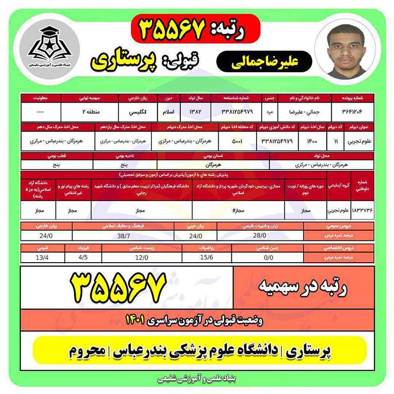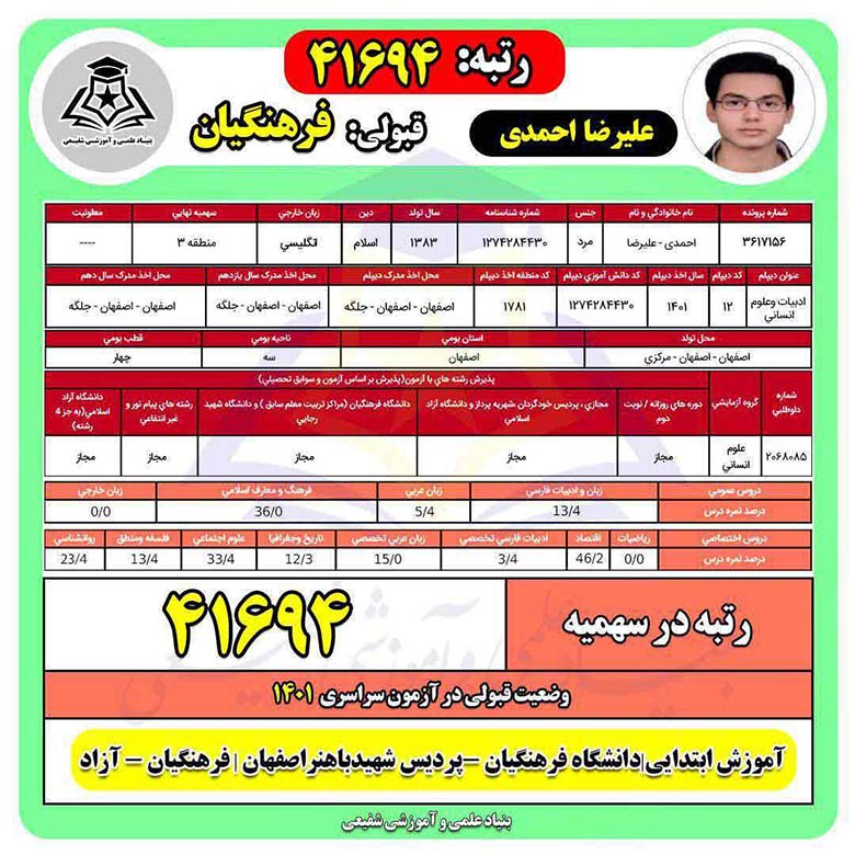 این فقط بخشی از رزومه انتخاب رشته سال های قبل است به رتبه داوطلبان و رشته قبولی آنها دقت کنید شماره شناسنامه و شماره پرونده و شماره داوطلبی افراد درج شده است که بتوانید از طریق سایت سازمان سنجش استعلام بگیرید سعی کرده ایم از تمامی رشته ها ، دوره ها و دانشگاه ها و با هر نوع سلیقه ای رزومه ارائه نماییم تا تمام حالات ممکن را پوشش دهد.